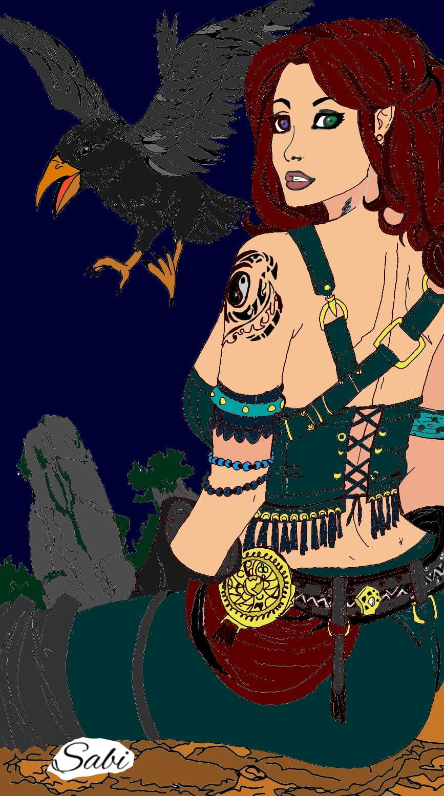 Fun fact: Sabi's staff holds a fragment of the Ouroboros' essence, symbolizing the eternal struggle against damnation.