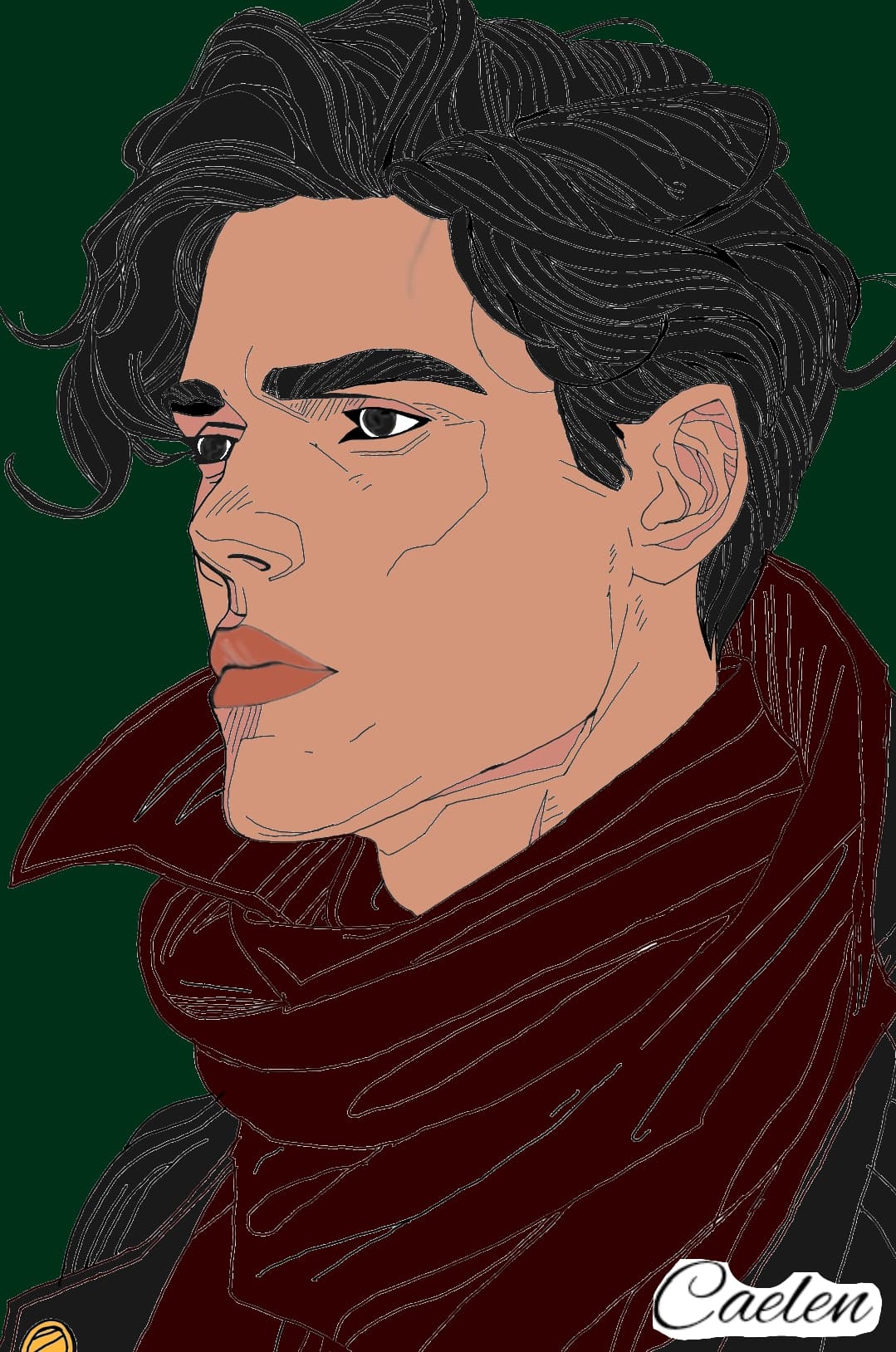 Caelen brings street smarts and shadowy skills to the ensemble, the young fighter who's mastered survival in a world that hunts the gifted. With tousled black hair, intense onyx eyes, and a red scarf accenting his green tunic and black leathers, he's often seen standing watch, dagger at the ready. Orphaned during early waves of the trials, Caelen grew up in the underbelly of society, honing his talents for stealth and deception.